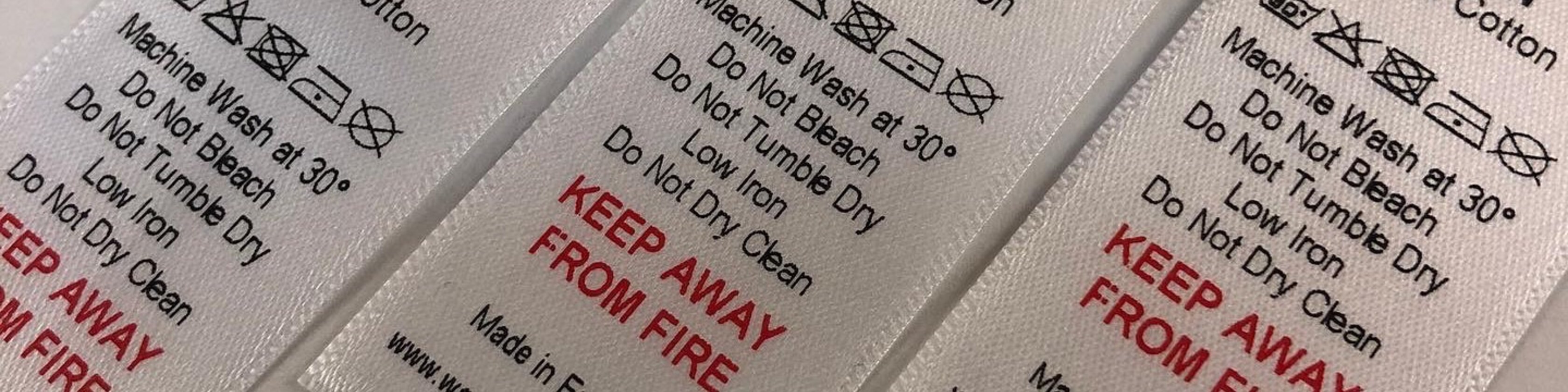 Garment Care Labels We specialise in manufacturing and printing Garment Care Labels for the Garment and Clothing industry. Supplying Various Quality Materials suitable for your unique products requirement for garment Wash Care Instructions. With various materials available in Stocked Standard Sizes including Satin, Woven Edge & Taffeta.