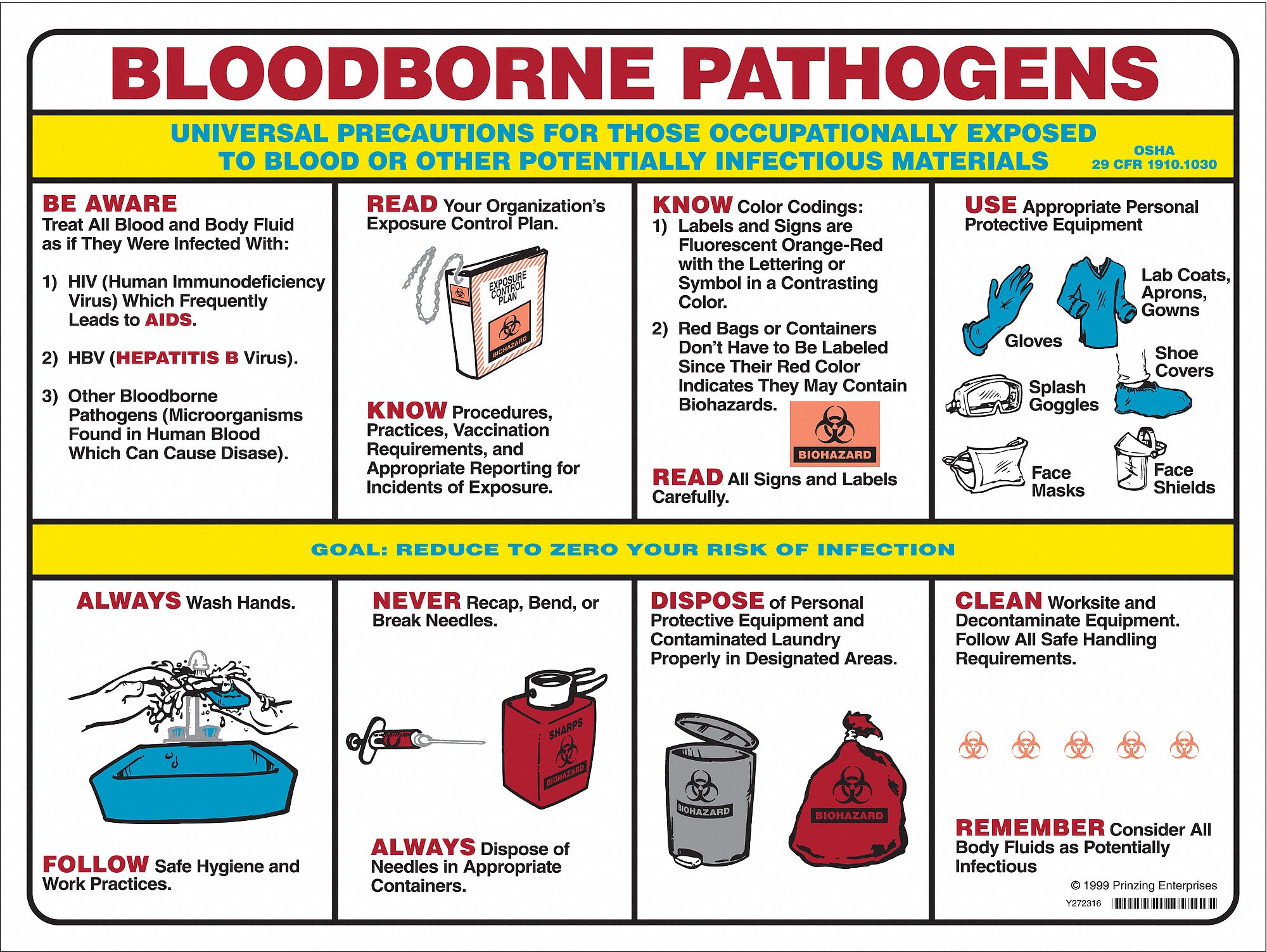 Accident and Injury Reporting | EHS - University of Washington WebIncident reports entered into the Online Accident Reporting System (OARS) are screened by EH&S. We triage the reports and forward to others as needed based on the type and severity of the incident. The OARS reports are also sent to their assigned Organizational Health and Safety Committee each month. The committee members review reports and assist with … OSHA Bloodborne Pathogen Standards - PubMed Web14.04.2022 · Bloodborne pathogens are microorganisms in human blood that can cause life-threatening diseases and pose a severe risk to health care workers. Contact with blood or other fluids, including semen, vaginal secretions, saliva, and serous fluids – pleural, pericardial, peritoneal, and amniotic – clear or visibly contaminated with blood potential …