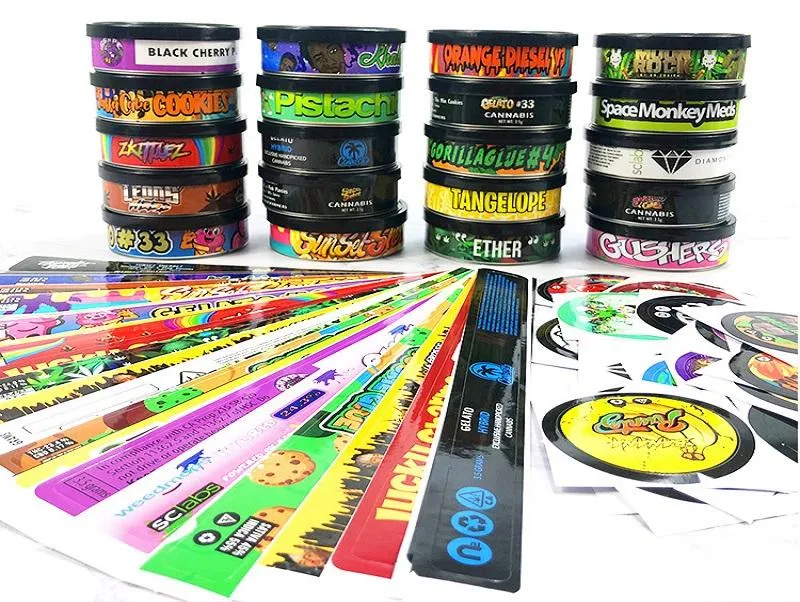 Custom Labels Tuna Can Sticker Wholesale Self Seal Press It in Sealing 3.5g Loop Pop Top 100ml Weed Storage Pressitin Tins