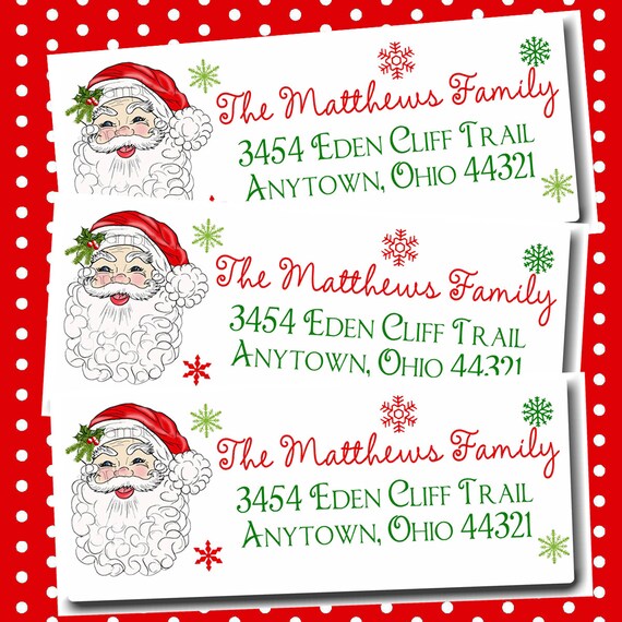 Santa Claus Return Address Labels, Christmas Tree address ... Jul 08, 2022 · Santa Claus Return Address Labels, Christmas Tree address labels, Santa labels, Snowflakes, Christmas, Holiday, stickers, labels, seals $8.90+ Loading Santa Return Address Labels - Etsy Christmas Address Labels - Personalized Return Address Labels - Mailing Address Labels - Easy to Peel, Guaranteed to Stick and Stay. TadaCards. (579) $18.79. $23.49 (20% off) FREE shipping.
