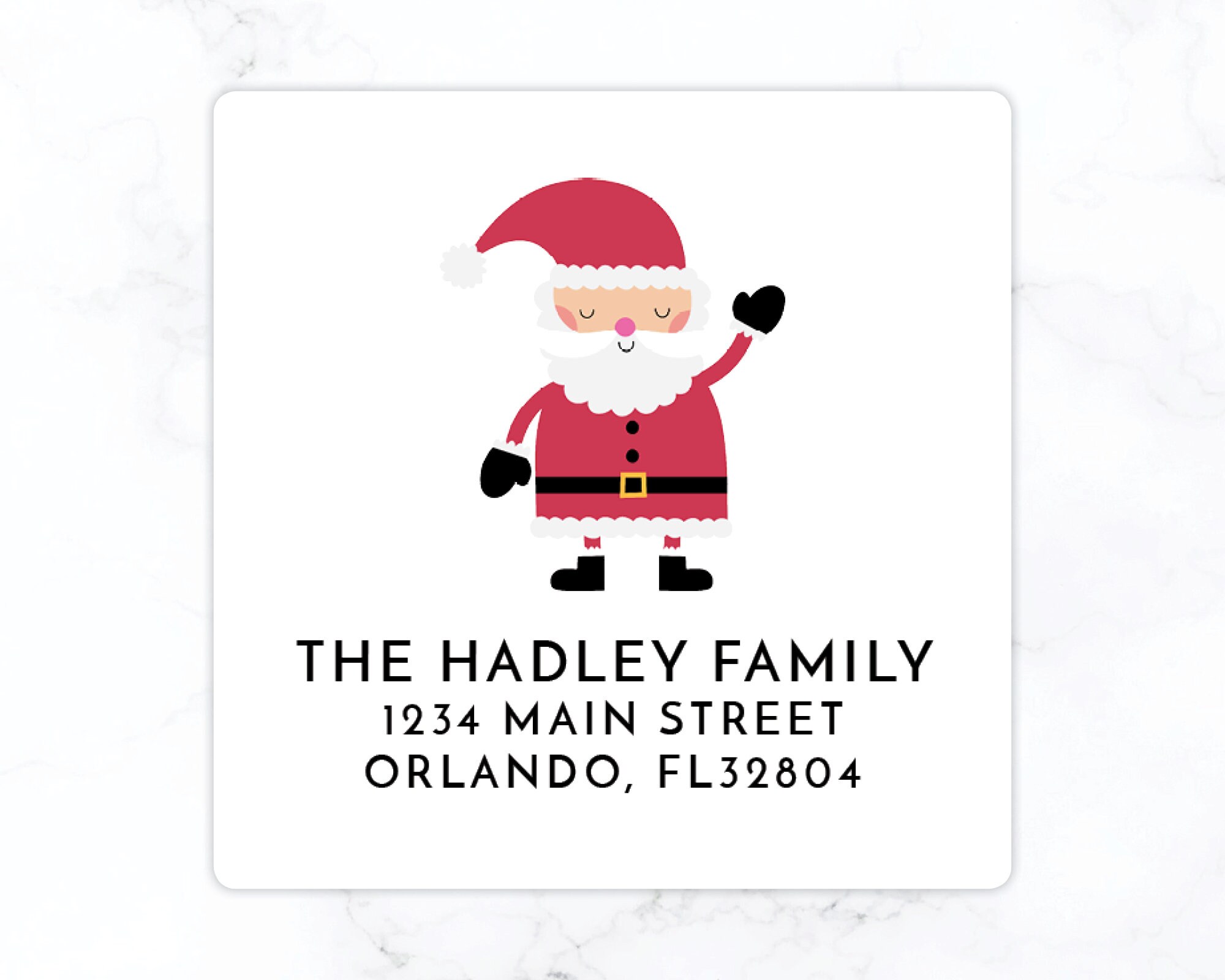 Santa Square Return Address Label | Personalized Holiday Envelope Sticker | Large 2" Back of Envelope | Kids Cute Santa Claus Label Address